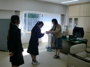 11月7日(金)校長室において、新潟県上越市で開催される第15回北信越高等学校弓道新人大会出場および、静岡県藤枝市で開催される第44回全国高等学校弓道選抜大会に出場する生徒へ、学校長より激励の言葉と清泉同窓会からの激励費が授与されました。