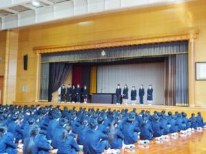 生徒会任命式では、令和8年度前期の生徒会役員が校長より任命されました。