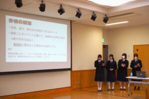 3月15日(日)富山市・堀川地区センターで開催された「堀川探究フォーラム2026」に2年探究・南富山滞留空間のチームが参加し、「南富山がみんなにとって居心地の良い場所になるためにはどうすればいいだろうか?」と題した探究活動報告を行いました。