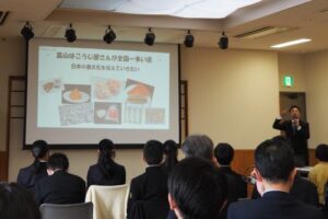 フォーラム第1部では本校以外にも、堀川小学校・堀川中学校・地元商店の探究活動発表があり、藤井富山市長も参加されました。