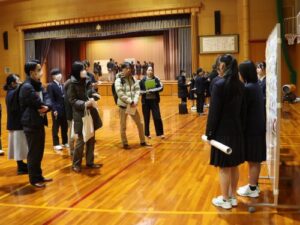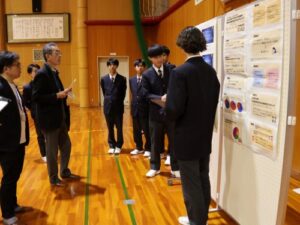 1年間の学びに伴走してくださった外部の方々や堀川中学校の先生方を招き、企業探究(4社2行政部署)・地域探究・興味探究など36グループがポスター発表をしました。